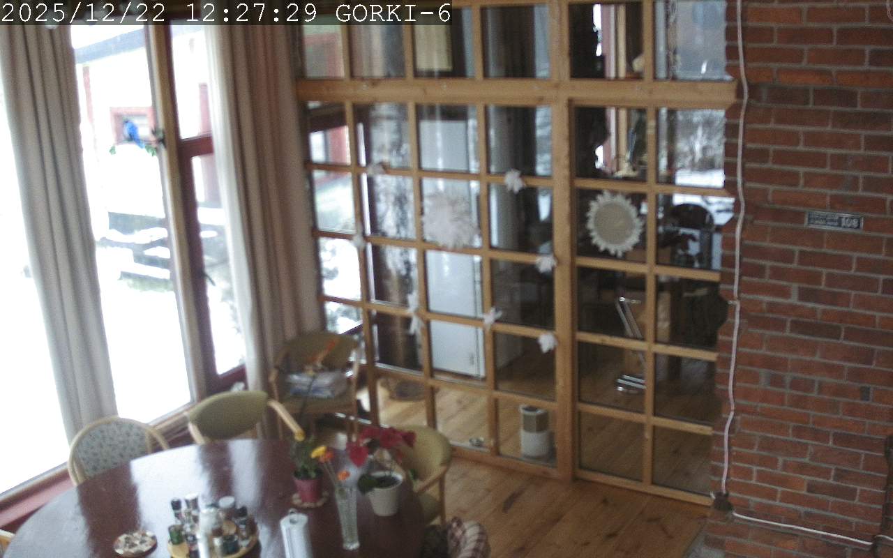 Привет, одинокий подглядыватель! В Горках, на Фазенде Родионовой, , всё как всегда: чудесные виды и застолья внутри. Возле столовки, на брехаловке, иногда встречаются знакомые люди. Им можно написать в личку, чтобы помахали рукой. У дома Овчинниковых можно наблюдать наступление золотой осени в режиме реального времени. В Гениндоме камера пока к сожалению не работает. |